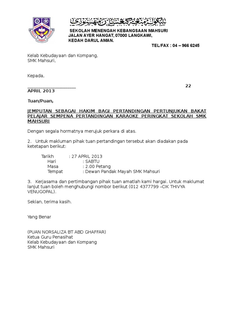 Surat Jemputan Hakim Kelab Kebudayaan Dan Kompang Pdf