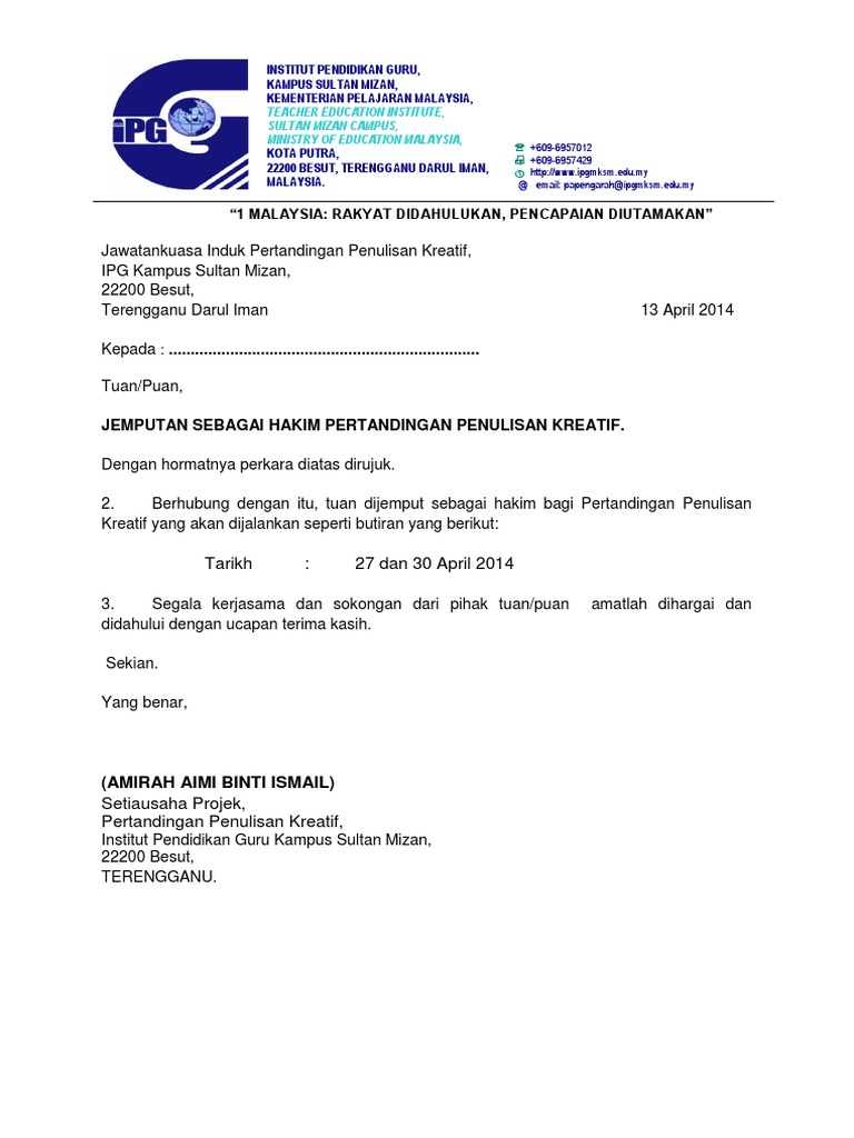 Contoh Surat Rasmi Jemputan Sebagai Hakim